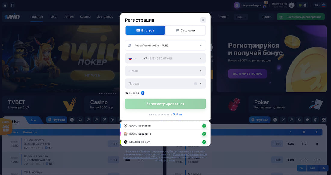 Букмекерская контора 1Win относится к популярному сервису, на котором можно делать ставки на разные спортивные события. Для получения полного доступа к сайту требуется зарегистрироваться на сайте, создать аккаунт, в котором можно проводить пополнение депозита, выводить выигрыши, активировать бонусы и пользоваться многими другим функциями. Ниже можно рассмотреть варианты как вы желаете зарегистрироваться и основные особенности букмекера.